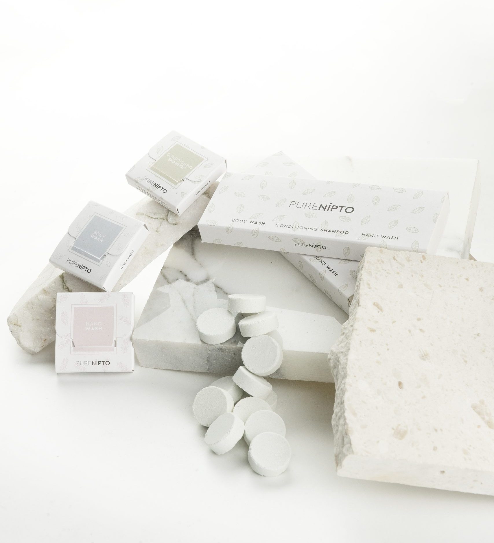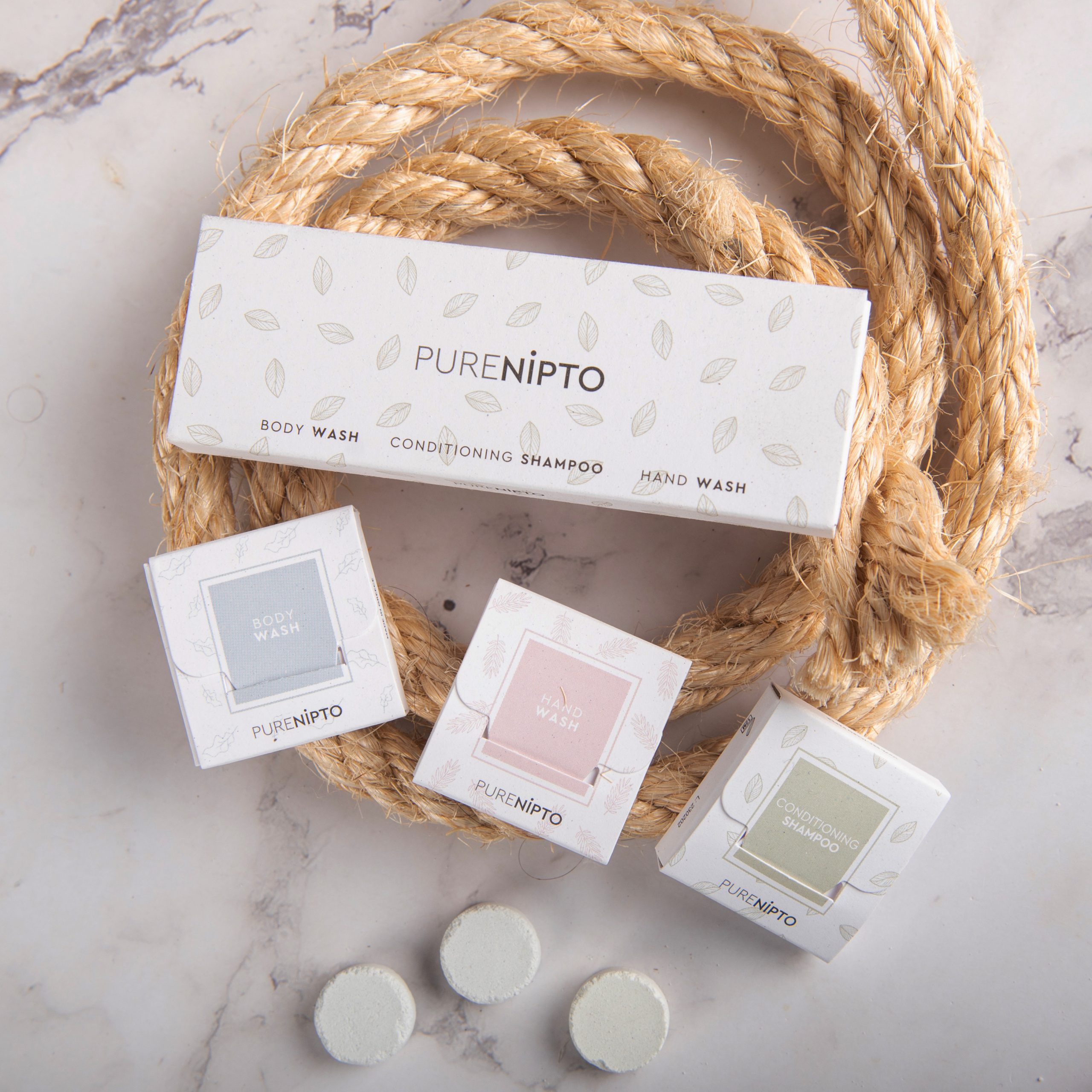Η πρωτοποριακή κατηγορία των προιόντων Purenipto Hotel Amenities συντάσσεται με την παγκόσμια οικολογική συνείδηση και απαλλάσει από τα πολλά προβλήματα που δημιουργεί η χρήση της πλαστικής συσκευασίας ακόμη και αυτής της ανακυκλώσιμης.